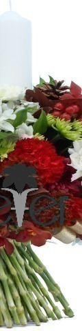 Send flowers to friends and loved ones this Christmas with the Celebrate the Season Flower Arrangement. A lovely addition to festive celebrations, it includes 8 red carnations, 3 white carnations, white alstromeria, green chrysanthemums, and a single white candle for lighting up your Christmas dinner display. Skilfully arranged to maximise the natural beauty of every bloom, it is the perfect flower gift for Christmas, Thanksgiving, and New Year's.