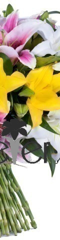 Featuring an exotic assortment of 15 yellow, white, and pink lilies, our Make Her Day arrangement will make a dramatic addition to any table or desk top. Vibrant and cheerful, it is the perfect Get Well Soon gift for those convalescing, and a lovely Thank You Gift for friends and loved ones who adore the delicate fragrance and timeless beauty of these magnificent blooms.
